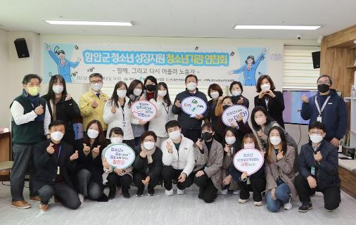 한편, 함안군은 지역 청소년들을 위한 다양한 프로그램과 문화공간을 제공하고자 청소년 수련관(055-585-7367), 청소년 문화의집을 위탁 운영 중이다. 아울러 청소년전문상담기관인 청소년상담복지센터 운영을 통해 청소년의 건강한 성장과 복지증진을 위해 힘쓰고 있다.