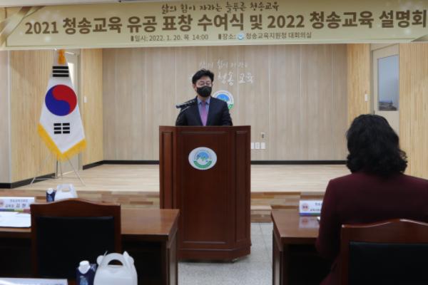 경상북도청송교육지원청은 1월 20일 유?초·중등 학교장, 학교운영위원장 및 2021 청송교육 유공 표창 대상자 등 50여명이 참석한 가운데 '2022 청송교육 주요업무계획'설명회를 개최했다.