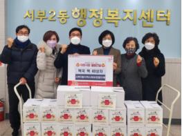 곽미양 서부2동장은 “어려운 이웃을 돕고자 하는 지역사회보장협의체 위원들의 따뜻한 마음이 전해져 관내 이웃들이 행복한 설 명절을 맞이하시길 바란다.”며 감사의 인사를 전했다.
