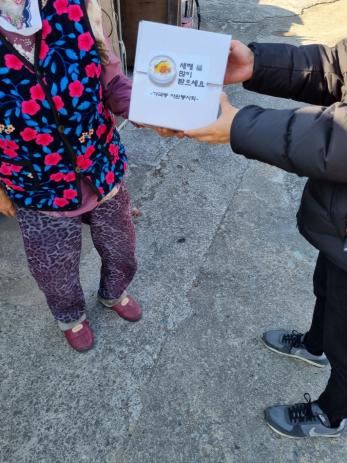 이날 가곡동 행정복지센터와 연계하여 각 가정을 방문하여 안부를 묻고 직접 준비한 떡국 떡을 전달했다.