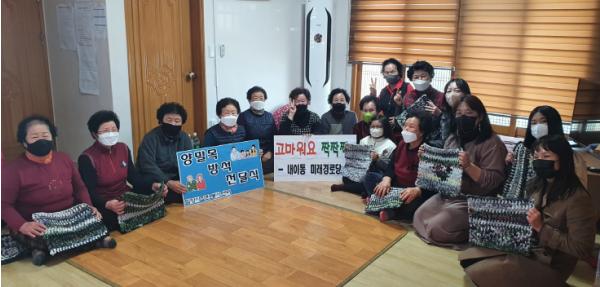내이동 미래경로당 김석연 회장은 “코로나19 때문에 사람들을 만나는 게 힘든데 이렇게 귀한 선물까지 들고 찾아와줘서 너무 고맙고, 우리도 지역사회에 도움이 되는 일이 있으면 적극 참여하겠다”라며 감사의 마음을 전했다.