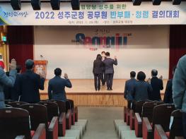 성주군은 임인년 새해를 맞아 20일 성주군청 대강당에서 반부패·청렴 성주를 위한 '2022 성주군청 공무원 청렴결의대회'를 개최하고 전 직원과 함께 청렴의지를 다지는 시간을 가졌다.