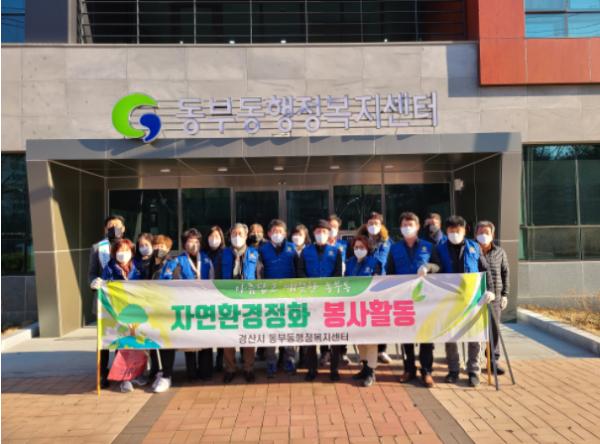 경산시 동부동 바르게살기운동위원회는 설 명절을 앞두고 20일 관내 시가지 및 말매못공원 일원에서 환경정화 활동을 했다. 이번 환경정화 활동은 설을 맞이하여 환경취약지역을 일제 정비함으로써 귀성객과 주민들에게 쾌적한 환경을 조성하기 위하여 실시했다.