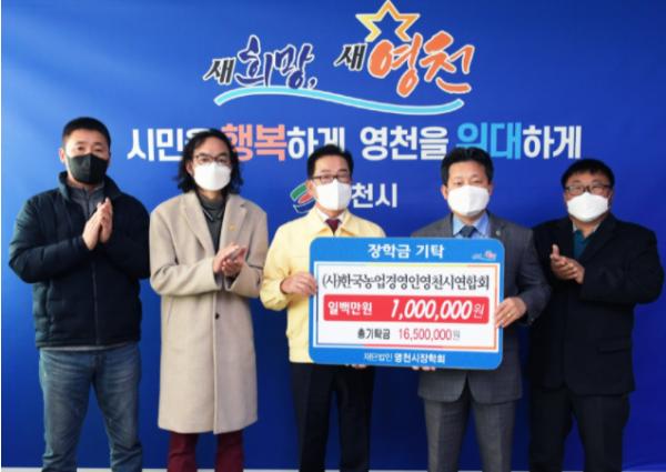 (사)한국농업경영인영천시연합회에서 100만원의 장학금을 (재)영천시장학회에 기탁했다.