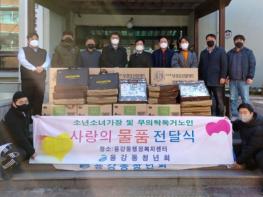 경주시 용강동청년회는 20일 설 명절을 맞아 관내 생활이 어려운 아동과 독거노인 세대에 전해 달라며 용강동행정복지센터에 200만원 상당의 후원물품(참치 50개, 김 50세트)을 기탁했다.