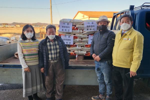 표희선 반딧불영농조합 대표는 설을 맞아 200만 원 상당의 쌀(10kg) 80포를 지난 18일 세도면에 전달했다.