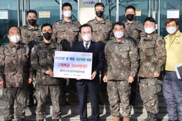 함양군 통합방위협의회 의장인 서춘수 함양군수는 21일 제8962부대 3대대와 함양소방서를 방문하여 2022년‘설’명절에도 지역 통합방위에 여념이 없는 국군 장병 및 의무소방대원들을 격려하고 위문금을 전달했다.