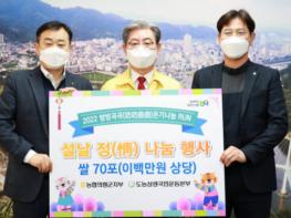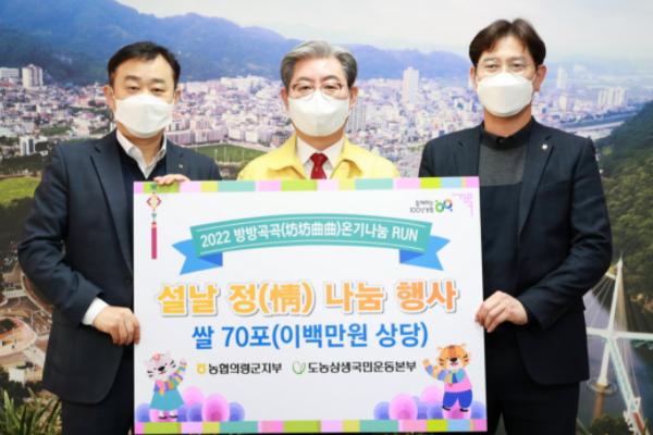 의령군은 지난 20일 NH농협 의령군지부(지부장 신해근)에서 의령군청을 방문하여 설맞이 사랑의 쌀 70포(2백만원 상당)를 전달했다고 밝혔다.