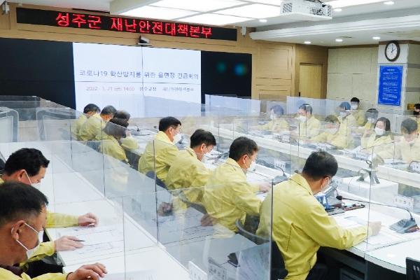 성주군은 1. 21 오후, 재난상황실에서 10개 읍·면장 및 관계 부서에서 참석한 가운데 ?코로나19 확산 방지를 위한 긴급 읍·면장 회의?를 개최하였다.