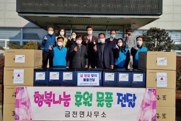 청도군 금천면은 지난 20일 한국수자원공사 직원 봉사단체인 물사랑 나눔단(단장 임태환)이 민족 고유의 명절인 설을 맞아 금천면 관내 어려운 이웃을 위해 김 100박스를 기탁했다고 밝혔다.