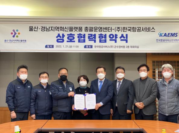 경상남도는 울산ㆍ경남지역혁신플랫폼 총괄운영센터와 한국항공서비스㈜가 21일, 한국항공서비스㈜ 군수정비동 2층 대회의실에서 울산ㆍ경남지역혁신플랫폼 장광수 총괄운영센터장, 한국항공서비스㈜ 김준명 대표이사, 경상남도의회 황재은 의원 그리고 양측 관계자들이 참석한 가운데 상호 협력 협약을 체결했다.