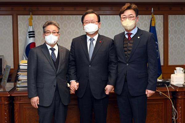 21일 김병수 울릉군수는 세종 정부청사에서 김부겸 국무총리를 만나 ‘울릉항 3단계 건설 공사 사업’, ‘울릉 일주도로3 건설 공사’, ‘울릉 어민 금융부담 완화 지원 방안’을 건의했다.