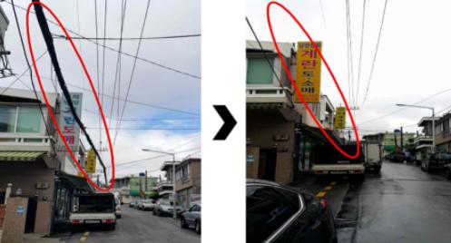 ‘망리단길’은 지속적인 지중화 요청 민원이 있었지만, 보도가 0.7m에서 1m 사이로 매우 협소해 지중화 사업 추진이 어려웠던 구간이다.