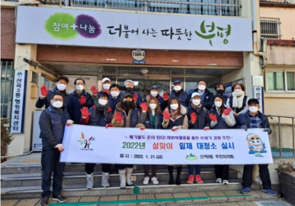 인천광역시 부평구 산곡3동은 지난 21일 주민자치회와 함께 지역 내 청소 취약지역에서 ‘설맞이 대청소’ 행사를 진행했다.