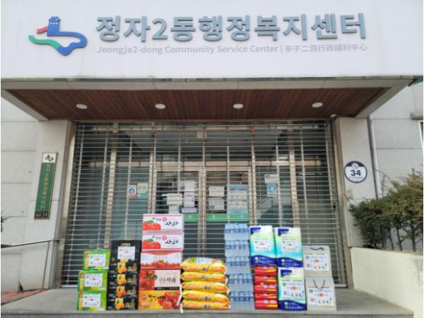 수원시 장안구 정자2동은 지난 23일, ‘수원 징검다리봉사단’에서 백미 100kg를 비롯한 과일 10박스, 생수 등 후원물품을 기탁했다고 밝혔다.