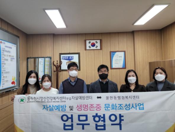 동두천시정신건강복지센터 부설 자살예방센터는 지난 20일 불현동행정복지센터와 ‘생명사랑마을’조성을 위한 업무협약을 체결했다.