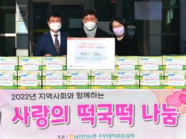 남인천농협 주부대학총동창회는 지난 20일 설 명절을 앞두고 지역 내 어려운 외국인 이웃들에게 전달해달라며 인천사회복지공동모금회를 통해 연수구에 ‘사랑의 떡국떡’ 600kg(150박스)를 전달했다.