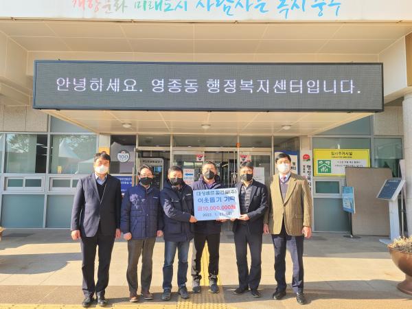 기탁식에는 김성수 대성베르힐건설(주) 상무이사, 김홍남 국제도시 건설국장, 김세원 영종동장, 이정국 영종동 주민자치회장 등이 참석했다.