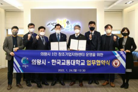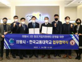 의왕시는 24일 시청 시민소통실에서 김상돈 의왕시장과 박준훈 한국교통대학교총장이 참석한 가운데 의왕시1인창조기업지원센터 운영을 위한 업무협약을 체결했다.