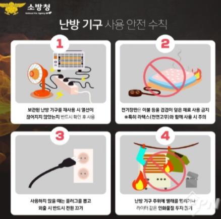 정선영 예방안전과장은 “겨울철 급증하는 전기제품 관련 화재는 안전수칙을 지키지 않으면 화재로 이어져 큰 피해를 입을 수 있다”며 “사소한 부주의를 경계하고 안전수칙을 준수해 안전하고 따뜻한 겨울을 보내길 바란다”고 전했다.
