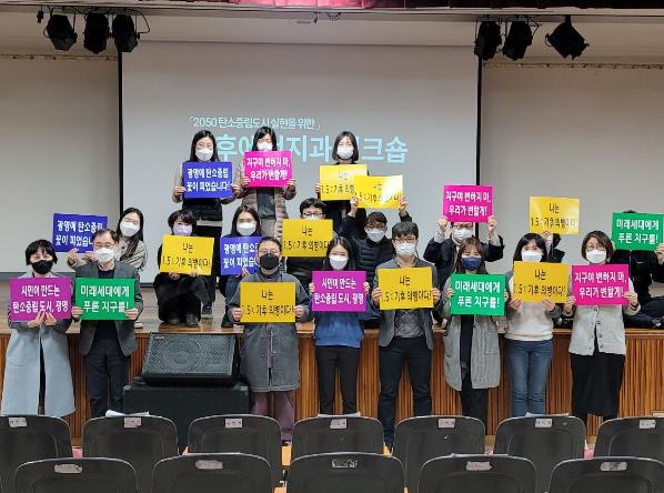 광명시는 지난 20일 열린시민청(구 평생학습원) 2층 강당에서 탄소중립 도시 조성을 위한 2022년 기후에너지 워크숍을 개최했다.