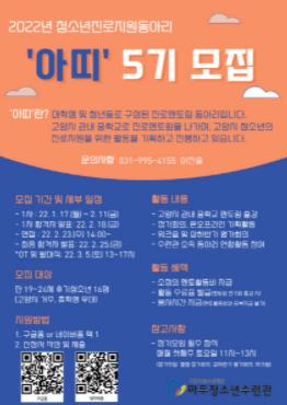 고양시청소년재단 마두청소년수련관은 청소년과 진로분야에 관심이 있는 만 19세~24세 대학생 및 청년을 대상으로 5기 멘토를 모집한다.