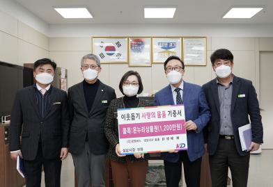 이날 받은 온누리상품권은 1만원권 1200장으로, 전통시장에서 현금처럼 쓸 수 있는 중소벤처기업부 발행 지폐다. 이 역시 홀몸노인, 차상위 계층 등 소외계층에 전달됐다.