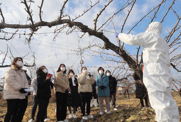 경기도농업기술원이 24일 안성시 서운면 과수농가에서 겨울철 과수화상병 예방을 위한 현장 교육을 실시했다.