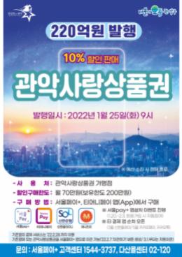 관악구가 설 명절을 맞아 25일 오전 9시부터 관악사랑상품권 220억 원을 발행한다고 밝혔다.