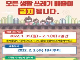 생활쓰레기 배출 금지 기간은 1월 31일부터 2월 1일까지 2일간이다. 연휴 기간 중 배출하지 못한 생활쓰레기는 2월 2일 오후 6시부터 배출하면 된다.