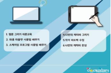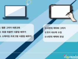 이달 25일부터 다음달 18일까지 진행되는 이번 클래스는 1일 1체험 2시간 진행되며, 현직 웹툰작가들이 사용하는 타블렛과 소프트웨어 운영기기를 직접 사용해보는 시간으로 마련되었다.