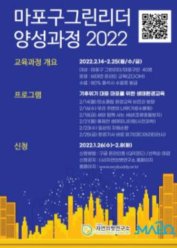 마포구가 탄소중립 생활 및 환경보전 실천의지를 높이고자 ‘온라인 그린리더 환경전문가과정 교육’ 참가자를 다음달 8일까지 모집한다고 24일 밝혔다.
