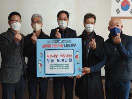 파주시 파주읍은 지난 21일 파주읍 행정복지센터에서 설명절을 맞아 파주읍 이장협의회, 파주읍 주민자치회, 파주읍 체육회가 관내 어려운 이웃을 위해 이웃돕기 성금 600만원을 기탁했다고 밝혔다.