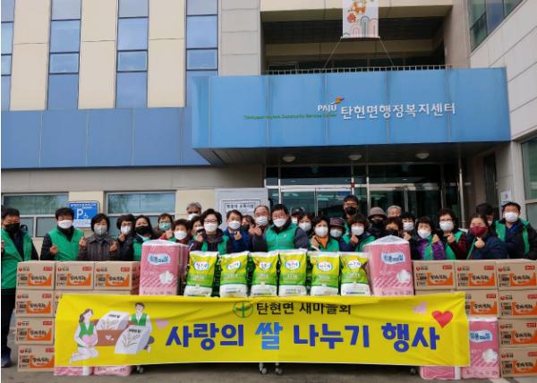 파주시 탄현면은 탄현면 새마을회 남?녀지도자가 지난 24일 설을 맞아 ‘사랑의 쌀 나누기’ 행사를 열었다고 밝혔다.
