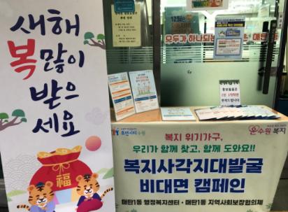수원시 영통구 매탄1동 지역사회보장협의체는 설 명절을 앞두고 1월 24일부터 1월 28일까지 위기가구 발굴 주간으로 정하여 비대면 캠페인을 추진하고 있다.