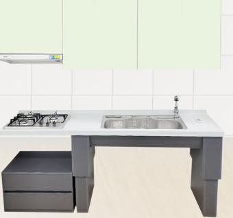 높낮이 조절을 통해 휠체어가 싱크대 아래 공간으로 진입하게 하거나, 허리를 구부리지 않고도 주방 일을 볼 수 있게 한다.