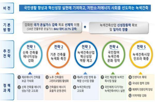 국토교통부는 강화된 국가 온실가스 감축 목표의 선제적 이행과 제로에너지건축 등 녹색건축산업을 신성장동력으로 육성, 일자리를 창출하기 위한 전략을 체계적으로 수립했다.