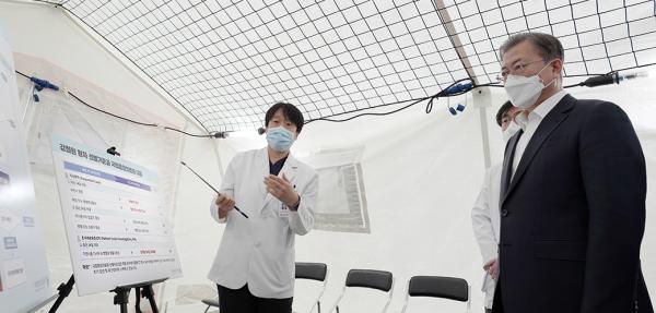 이 자리에서 문 대통령은 과거에는 입원 환자로 인해 다른 환자 또는 다른 내원객들에게 감염이 된다거나 의료진에게도 감염이 되는 사례가 있었는데, 지금은 선별진료소, 격리병실 병상, 음압병실 식으로 철저하게 차단되기 때문에 감염 전파 우려가 없는지에 관심을 갖고 점검했다.