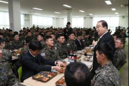 문 의장은 영내 식당에서 장병들과 오찬을 함께하며 "여러분들의 뒤에는 5천만 국민과 대한민국이 있다 대한민국을 뒷받침한다는 생각으로 하루하루 잘 견뎌주길 바란다”고 당부한 뒤, 부대 측에 위문품으로 건조기 10대를 전달했다.