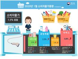 1월 소비자물가지수는 전월대비 0.6%, 전년동월대비 1.5% 각각 상승했다.