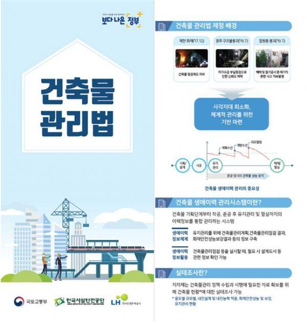 앞으로도 국토교통부는 ‘건축물관리법’의 원활한 시행을 위해 건축물관리점검자 등 관련 전문가 육성, 건축물관리지원센터 지정, 건축물관리점검·화재안전성능보강 사업 등에 대한 대국민 홍보 및 지자체 담당자 교육 등을 적극 추진할 예정이라고 전했다.