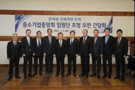 간담회에 국회에서는 이기우 의장비서실장, 이계성 정무수석비서관, 최광필 정책수석비서관, 권순민 부대변인, 송대호 산자중기위 수석전문위원, 이용준 환경노동위 수석전문위원 등이 참석했고 중소기업중앙회에서는 김기문 중소기업중앙회장, 서병문·권혁홍 중소기업중앙회 수석부회장 등이 참석했다.