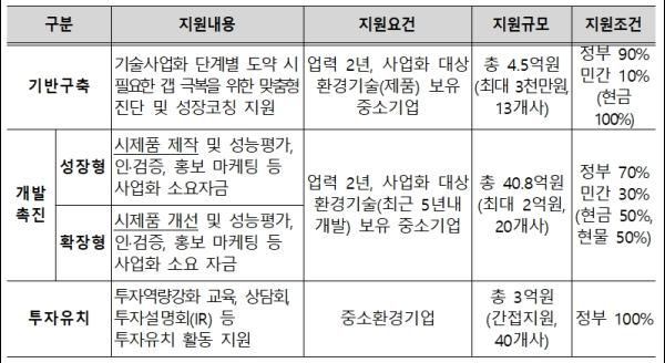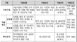 기업 신청자격을 기존의 업력 3년에서 2년으로 완화했으며, 우수 환경기술의 사업화 촉진을 위해 환경부 연구개발 성공과제 가점은 2점에서 3점으로 확대했다.