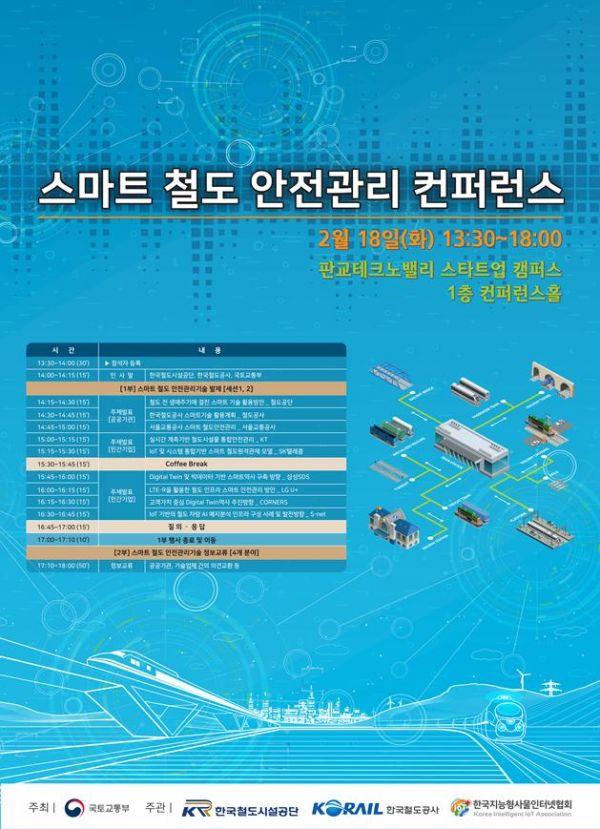 컨퍼런스는 국토교통부가 주최하며 한국철도시설공단·한국철도공사·한국사물인터넷협회가 공동 주관해 진행해 철도운영기관과 스마트 기술 관련 민간 기업 등 총 200여명이 참석한다.