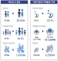 혁신도시의 평균 연령은 33.5세로 우리나라 평균인 42.6세에 비해 매우 젊은 것으로 나타났으며 특히 만 9세 이하 인구가 17.7%를 차지해 전국 평균의 약 2배에 달하는 특징을 보였다.