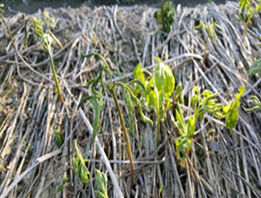 인삼 싹의 저온 피해를 예방하려면 3월 초부터 기상 정보를 확인해 해가림 차광 자재를 내리고 두둑 위에 흙을 덮어줘야 한다.