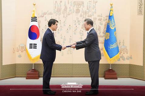 문재인 대통령은 오늘 오전 청와대에서 노태악 신임 대법관에게 임명장을 수여했다.