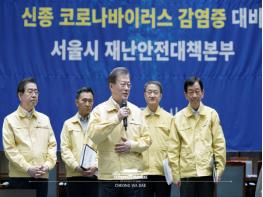 회의를 마치고 문 대통령은 서울시 재난안전대책본부를 방문해 관계자들을 격려했다.