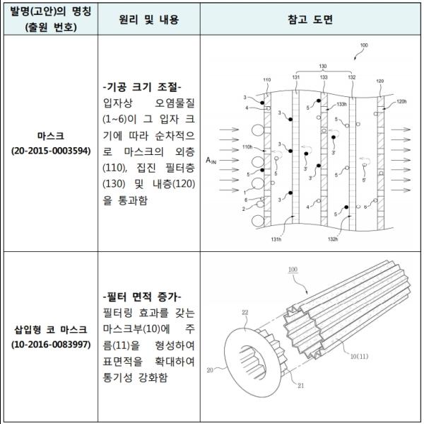 출원사례를 보면, 기공 크기가 작아질수록 통기성이 나빠지므로 이를 해결하기 위해 필터의 면적을 증가시키는 등 먼지의 크기와 상관없이 적용되는 기존 기술을 활용할 뿐 초미세먼지에 특화된 새로운 기술의 도입은 미흡한 실정이다.