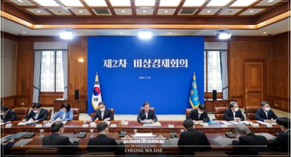 코로나19에 따른 비상경제 상황을 대응하기 위한 제2차 비상경제회의가 문재인 대통령 주재로 열렸다. 이 자리에서 대통령은 "1차 회의에서 결정한 50조원 규모의 ‘비상 금융 조치’를 대폭 확대해 100조원 규모의 기업구호 긴급자금을 투입하기로 결정했다"고 밝혔다.